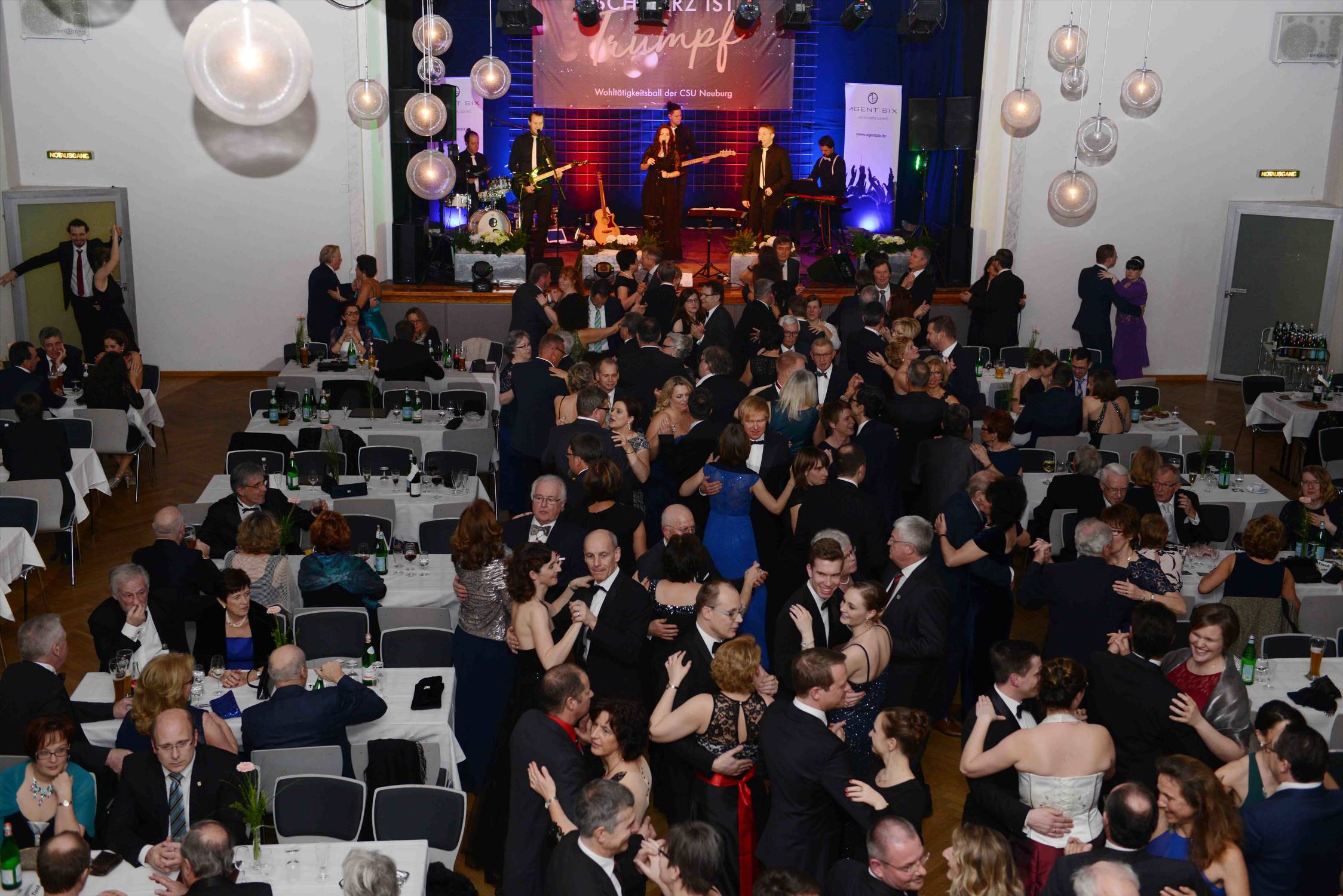 auf dem 38. Wohltätigkeitsball der CSU Neuburg/Donau trat die Band Agent Six erstmals in Neuburg auf. Entsprechend groß war die Spannung und mit Blick auf die Referenzen auch die Erwartungen der Ballbesucher. Schon nach den ersten Stunden war klar: Die Erwartungen wurden nicht enttäuscht. Alle Altersgruppen (18 – 85) vergnügten sich auf der Tanzfläche, die bis zum Musikende um 03:00 Uhr morgens stets gut gefüllt war. Die Band versteht es, auf die momentane Stimmung auf der Tanzfläche einzugehen und brilliert an den Instrumenten und im Gesang. Die Vor- und Nachbereitung durch das Bandmanagement war hervorragend. Fazit: Genau die richtige Wahl für unseren traditionellen Schwarz-Weiß-Ball mit bunt gemischtem Publikum.