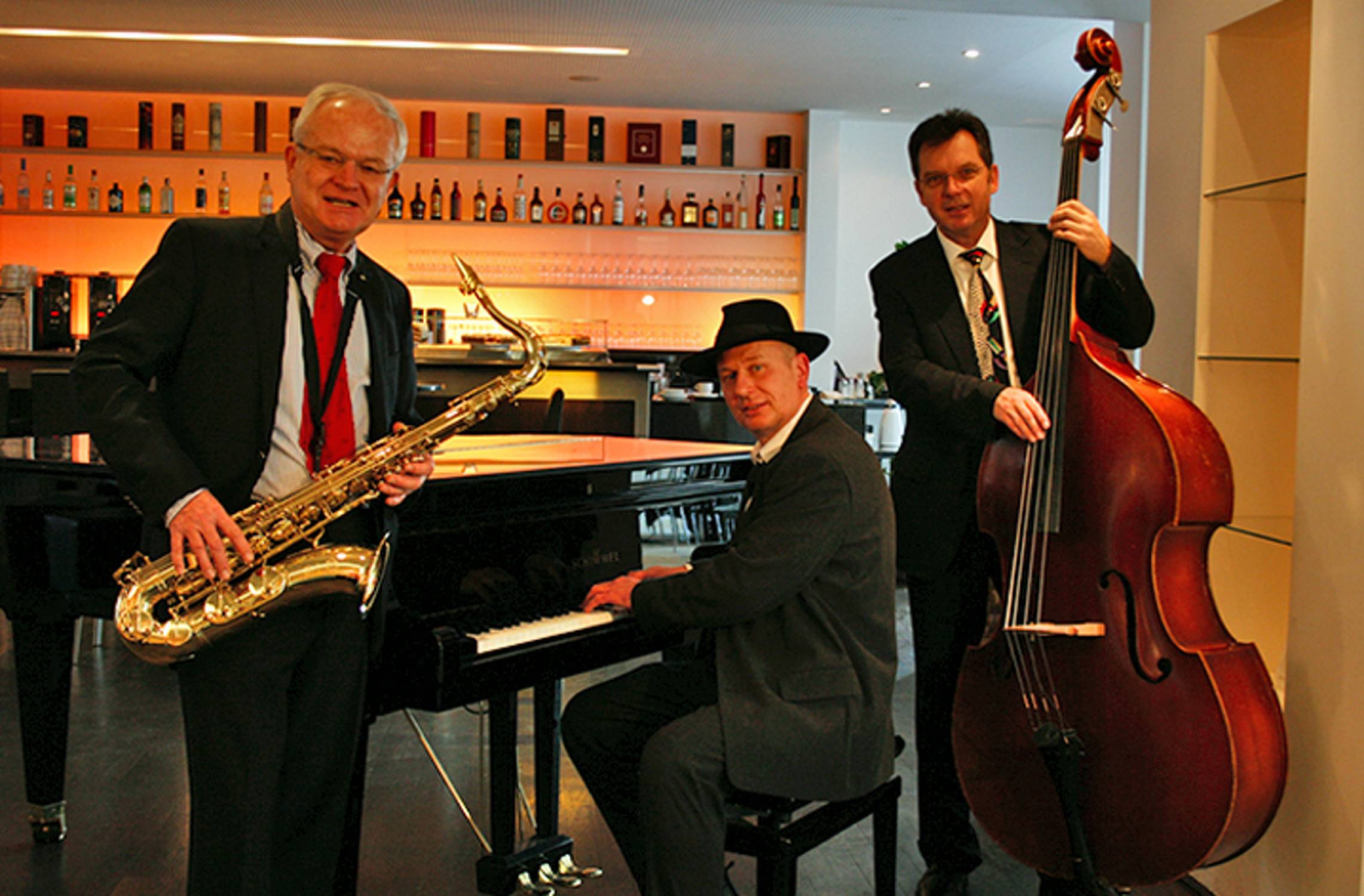 Wir spielen ohne Schlagzeug. Deshalb ist „Leslie‘s Bar-Jazz“ die ideale Besetzung, wenn Sie Live-Entertainment möchten, aber aus Platz- oder Kostengründen keine große Band buchen wollen – 100% Livemusik – ohne Midi-Files oder Computer.