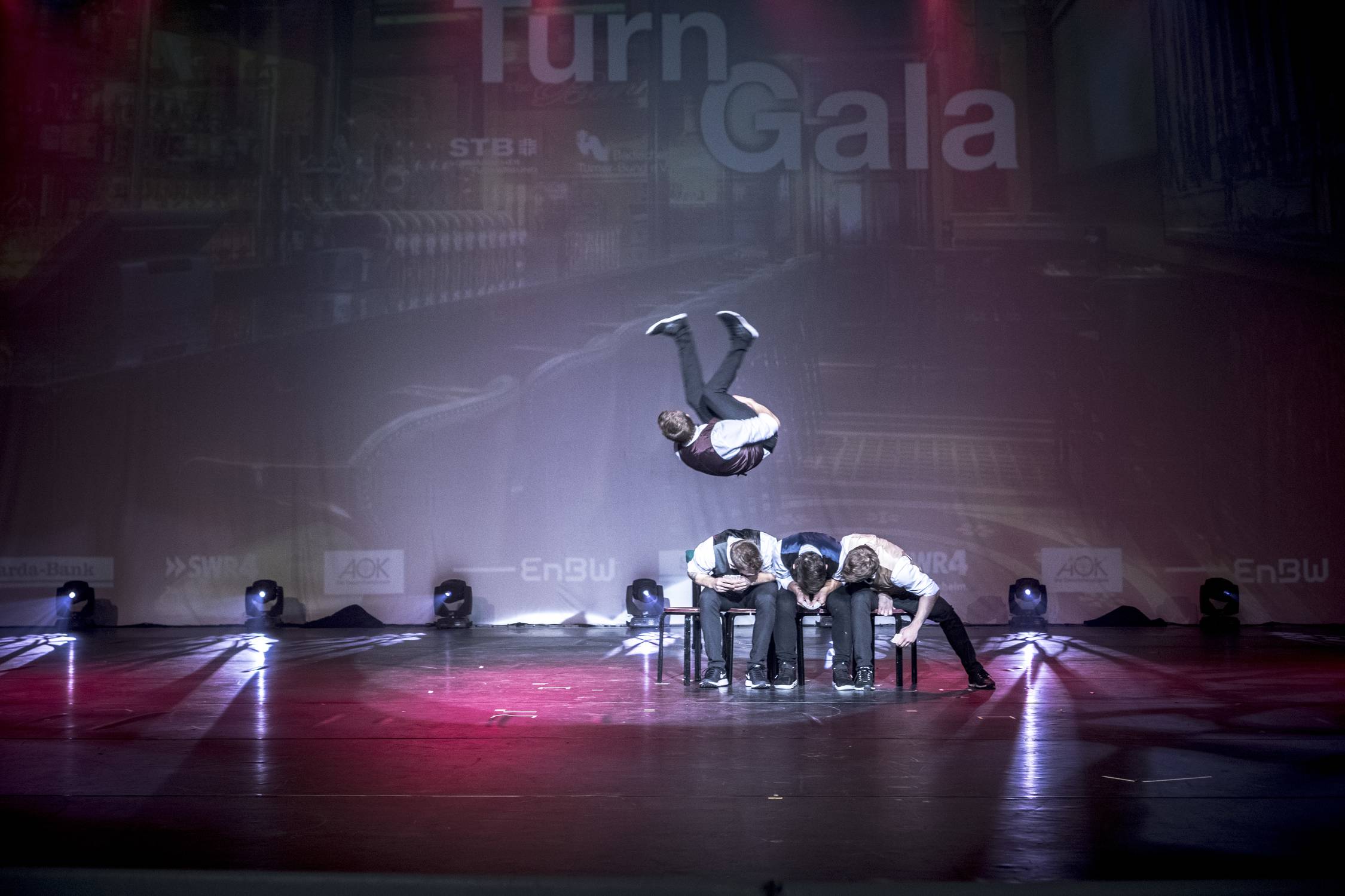 Die Tricking Show tritt standardmäßig mit vier Artisten auf. Je nach Anlass und Kundenwunsch sind 2-6 Performer problemlos möglich. Sprechen Sie uns für Beratung gerne an, wir benötigen 5x5 m Platz auf der Bühne für unsere Sprungelemente, sind jedoch flexibel in der Planung.