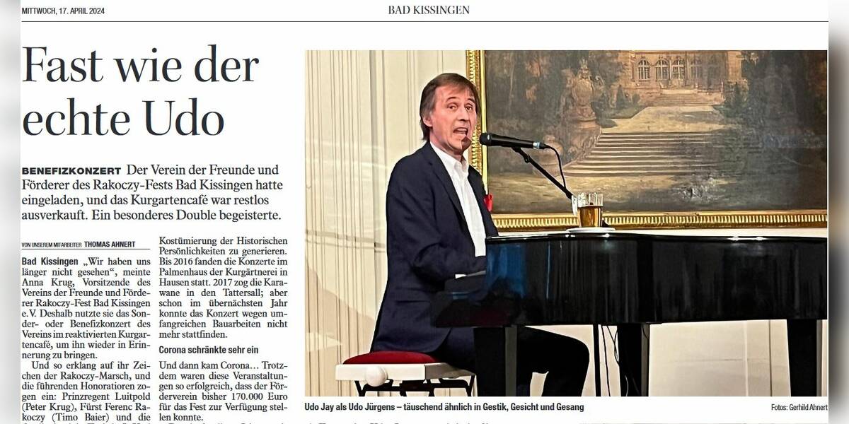 Unverbindlich anfragen Der Pianist und Sänger Udo Jay spielt die Hits von Udo Jürgens. Sowohl musikalisch als auch optisch ein täuschend echtes Double!