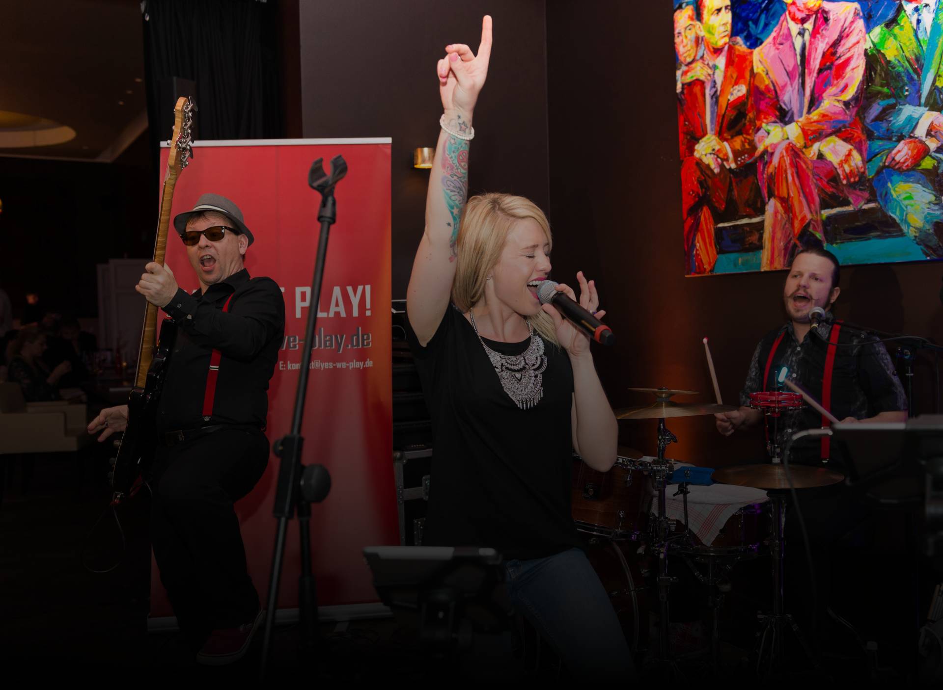 Die Frankfurter Partyband Yes We Play! gibt es als Trio oder in größerer Besetzung mit Sängerin, Saxophon und Keyboard.