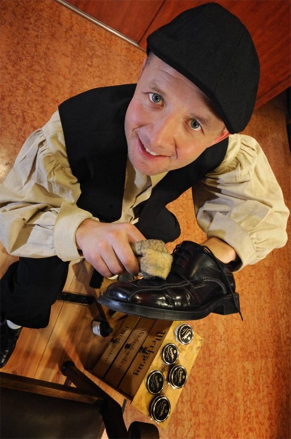 Unverbindlich anfragen Der traditionelle Schuhputzer aus dem Vogtland bereichert Firmenfeiern, Hochzeiten und Messen in ganz Europa. Schuh-Putzen im Stil der 20er Jahre, auch mit Live-Piano.