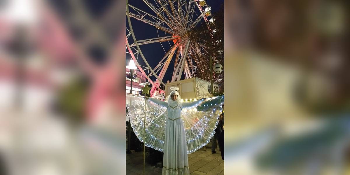 Wählen Sie zwischen dem Weihnachtsmann oder einen Weihnachtsengel auf Stelzen.