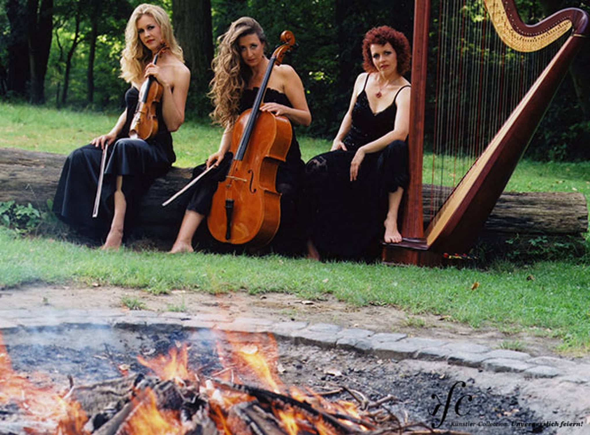 Die Aschaffenburger Violinistin Daniela Reimertz, Anne Kox-Schindelin aus Würzburg an der Harfe, und Birgit Förstner am Cello präsentieren einen mitreissenden Klang aus Klassik, Zigeunermusik, Klezmer und dem Tango. Was die Genres verbindet ist die Leidenschaft im doppelten Sinne: tiefgreifende Sehnsucht und überschäumendes Temperament - Ein Feuerwerk der Gefühle.