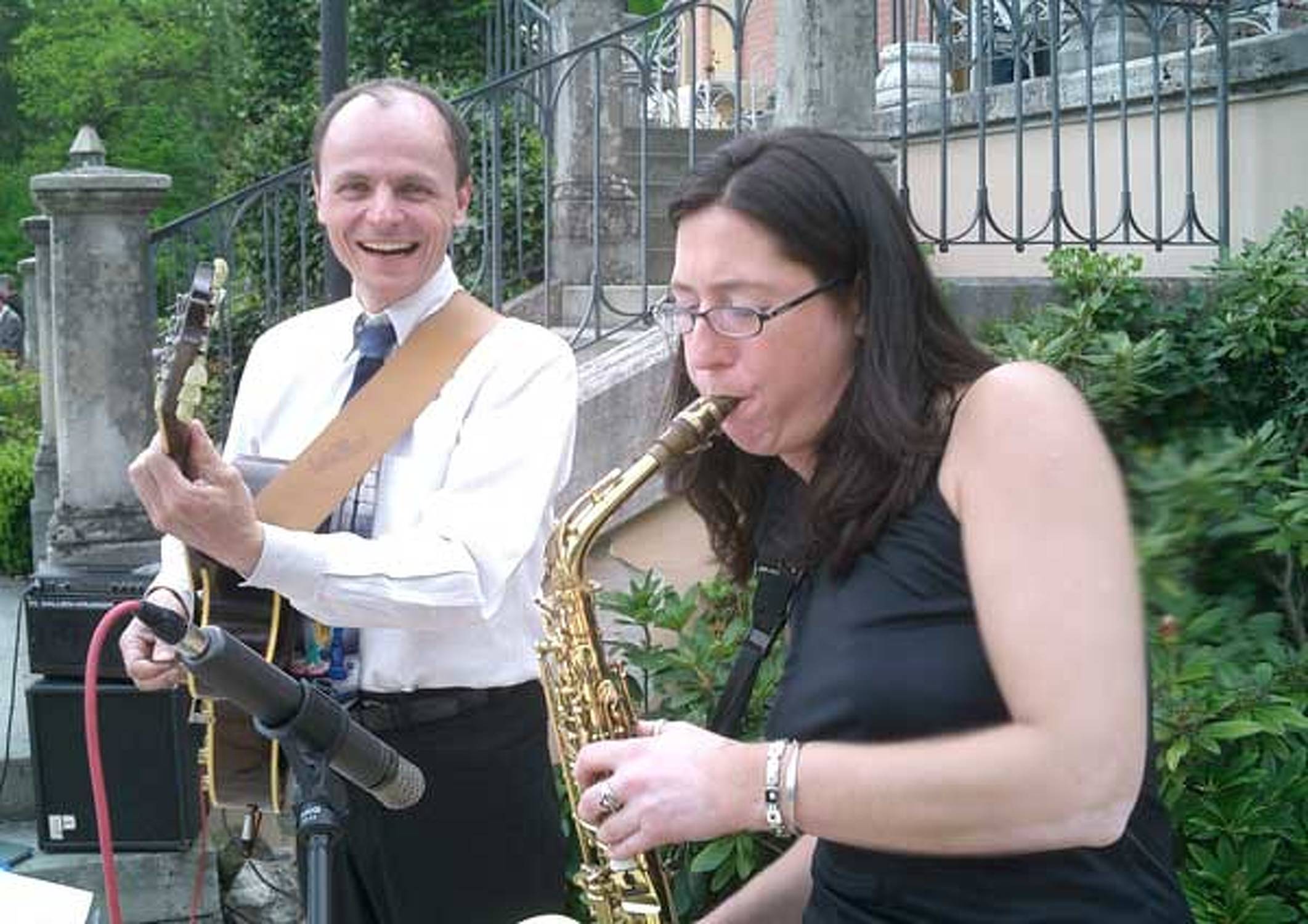 Gerne lässt sich das Trio auch vergrößern, falls eine größere Besetzung gewünscht ist. Solange es der Platz zulässt, spielen wir gerne auch mit Kontrabass, Klavier und/oder Schlagzeug.