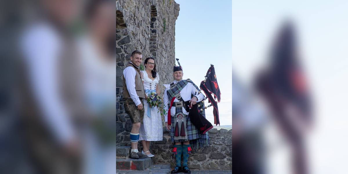 vielen Dank für Deinen super Auftritt auf unserer Hochzeit am 28.07. auf der Strahlenburg! Meine Frau hat mich mit Ihnen überrascht - und die Überraschung ist voll und ganz gelungen. Für einen Moment dachte ich in der Tat, in Schottland zu sein. Grandios. Auch die Gäste waren begeistert.